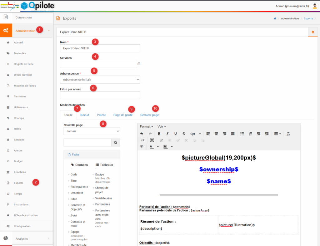 Lors de l’export, ce sont ces variables qui sont remplacées automatiquement par les valeurs saisies dans chaque fiche.