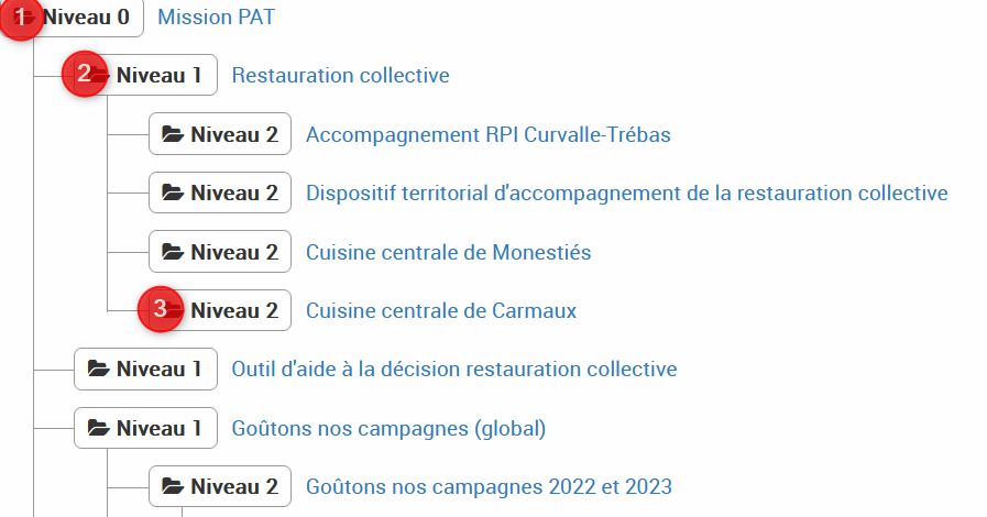 - Feuille — niveau le plus bas de l’arborescence (ex. sous-projet, action opérationnelle),