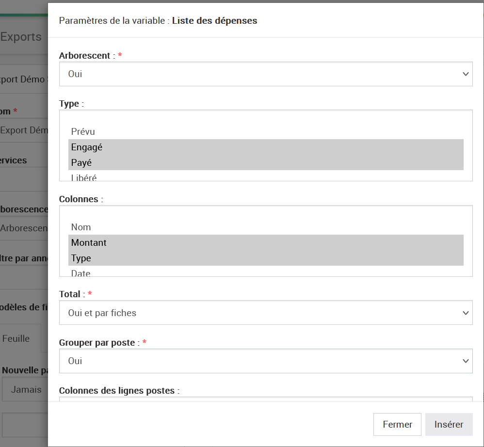 - Nom (3) — Permet de nommer le modèle d’export. Ce nom apparaîtra ensuite dans la liste des exports disponibles.