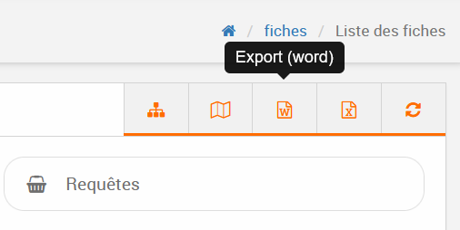 Depuis la liste des fiches, sélectionnez les fiches à exporter puis cliquez sur l’icône Word située en haut à droite.